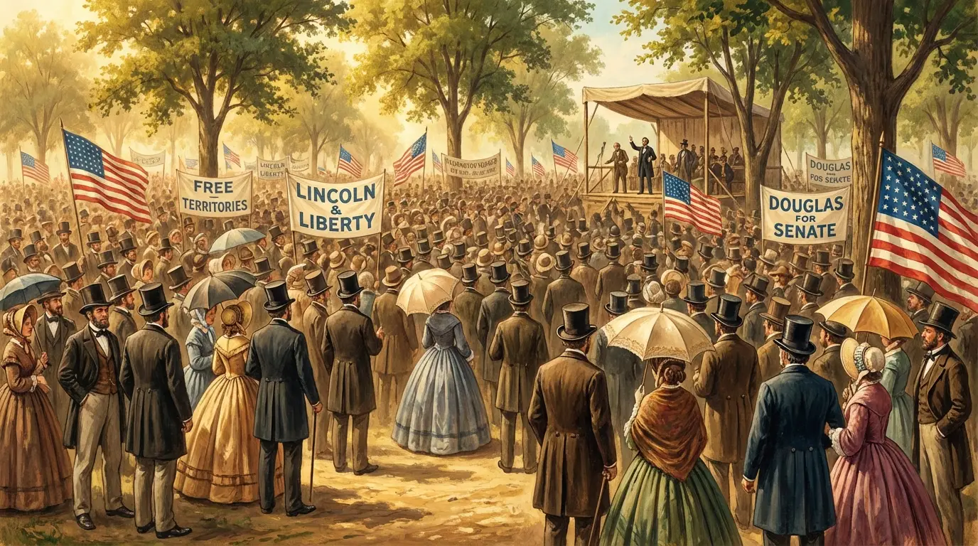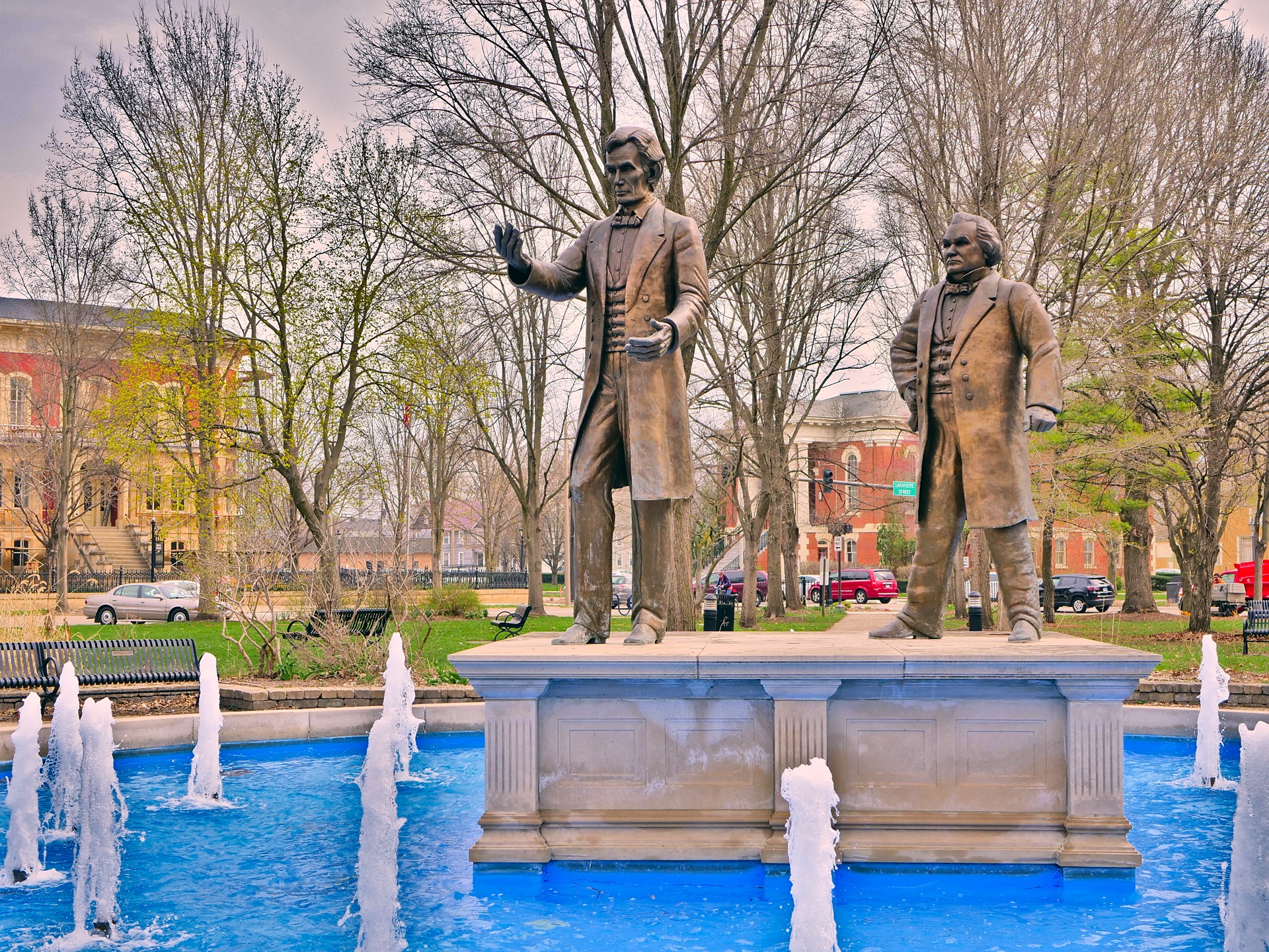 Bronze Lincoln + Douglas. Quiet. Powerful contrast with 12,000-person crowd.